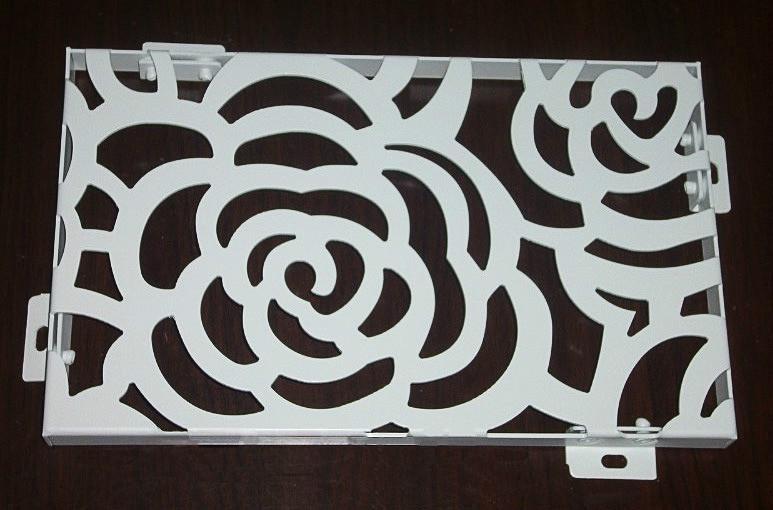 雕花铝单板的特点: ◆ 可制成平面或者弧形等多种复杂形状 ◆ 图案丰富,颜色可定制,尽显个性风格 ◆ 漆层均匀细腻,装饰美观 ◆ 表面立体感强,抗静电不吸尘 ◆ 重量轻,钢性好 ◆ 环保无毒,安全防火 ◆ 便于清洁、保养、抗污染 ◆ 可100%回收利用,保护环境,减小污染